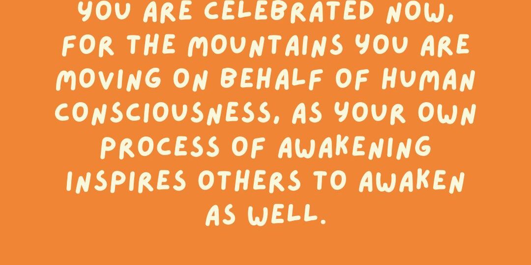 You belong to the earth and everyone on it. You are united, connected, loved, valued, and celebrated – not only on your planet, but in heavenly realms as well. You are celebrated now, for the mountains you are moving on behalf of human consciousness, as your own process of awakening inspires others to awaken as well.