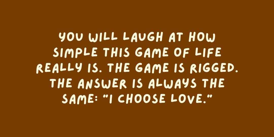 Remembering that on some level, all people are connected by a unified field of consciousness, you recognize that their good fortune is indeed yours as well. As you apply this game to other areas of your life, you will laugh at how simple this game of life really is. The game is rigged. The answer is always the same: “I choose love.”