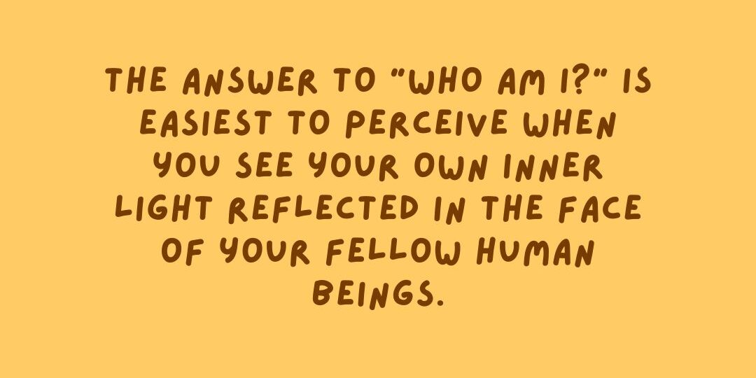 In times of solitude, you may ponder the question, “Who am I?”. But the answer to this question can be difficult to ascertain in isolation. The answer to “Who am I?” is easiest to perceive when you see your own inner light reflected in the face of another. This is the light that unites humanity.
