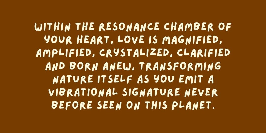 Observe the beauty of your own soul as love changes its shape, color, and texture in response to each and every person, plant and animal you encounter. The exquisite beauty of the most magnificent sunrise pales in comparison to the beauty of your own soul when love pours through you. Within the resonance chamber of your heart, love is magnified, amplified, crystalized, clarified and born anew, transforming nature itself as you emit a vibrational signature never before seen on this planet.