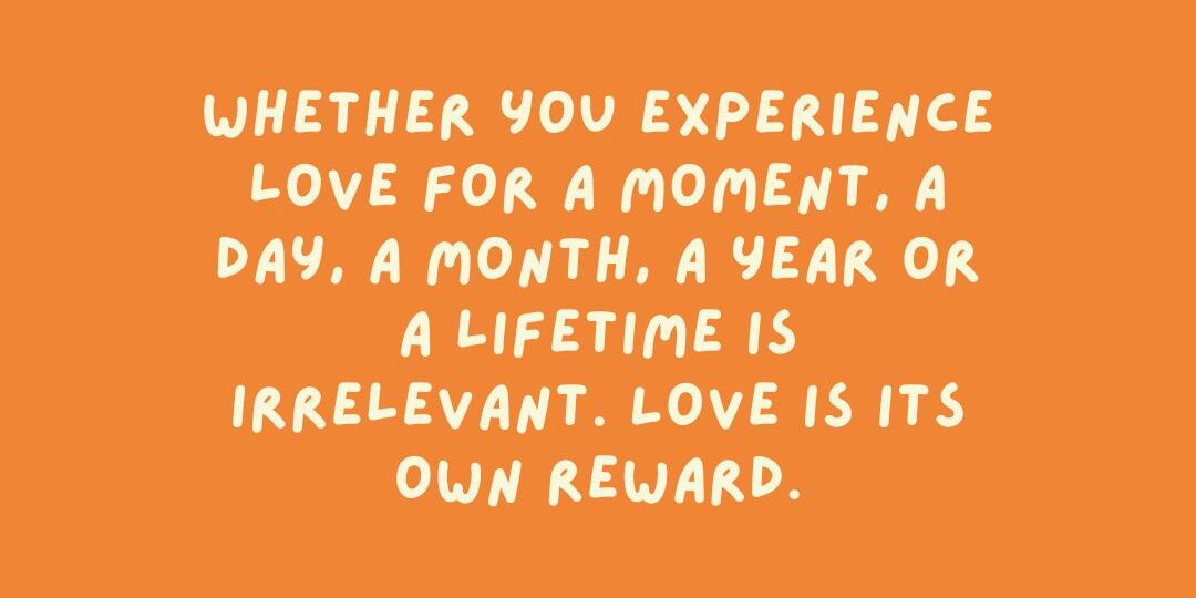 Whether you experience this love for a moment, a day, a month, a year or a lifetime is irrelevant. Time is an illusion. Duration is inconsequential. Love is its own reward.