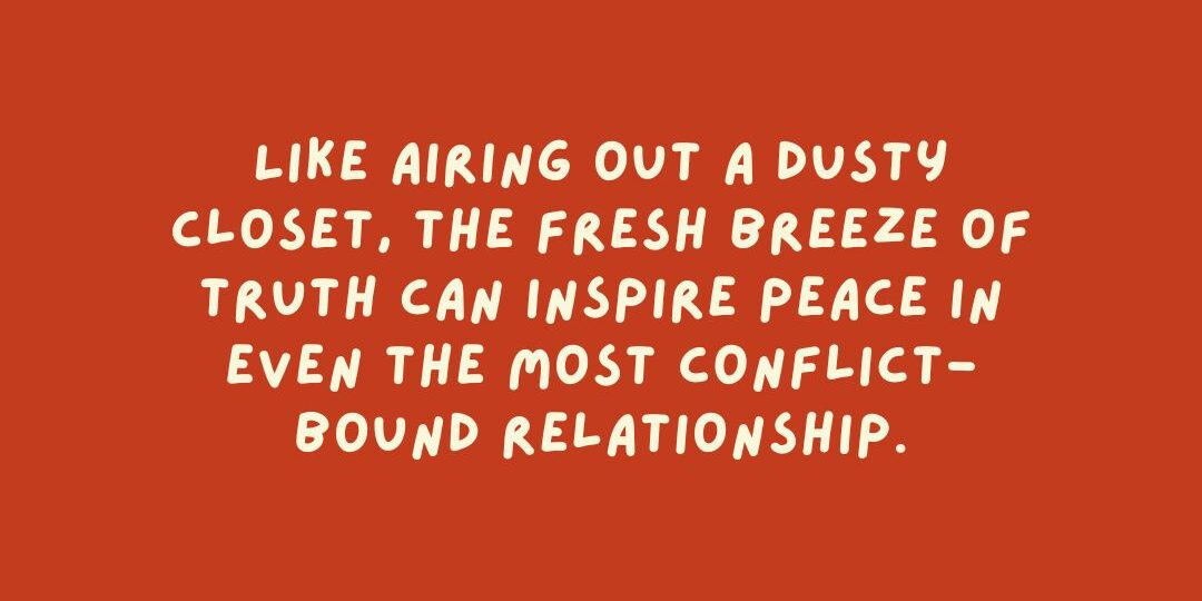 There is great freedom when you come to realize your secret-keeping is unnecessary and your fears are unfounded. Like airing out a dusty closet, the fresh breeze of truth can inspire peace in even the most conflict-bound relationship.