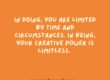 As Creator experiencing exhilaration and excitement in the creative process, you will inevitably encounter roadblocks designed to re-direct your efforts. Meeting these roadblocks with stress and resistance is counterproductive. Stress and resistance steal your energy.