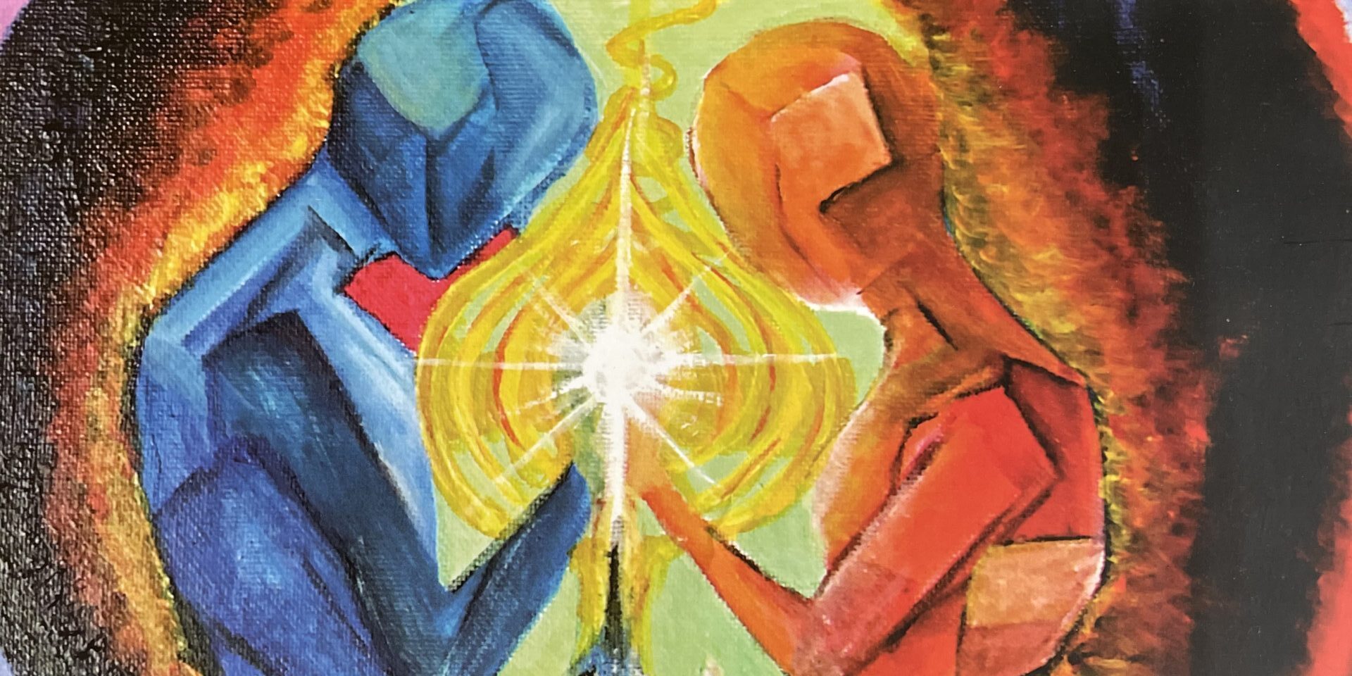United in a single heartbeat, two partners engage in the spiritually alchemical process of emotional transmutation to transform fear in its various forms to pure and unconditional love. This act, played out in a deeply intimate expression of love, includes the use of sacred symbols, drawn out on the skin, as Spirit moves through a partner’s hands. These symbols cannot be taught, as each body’s musical composition is different. As the symbols emanate from the space between body and hand, the hand will know its movements they way an electron knows the path it needs to trace across the empty space of an atom.