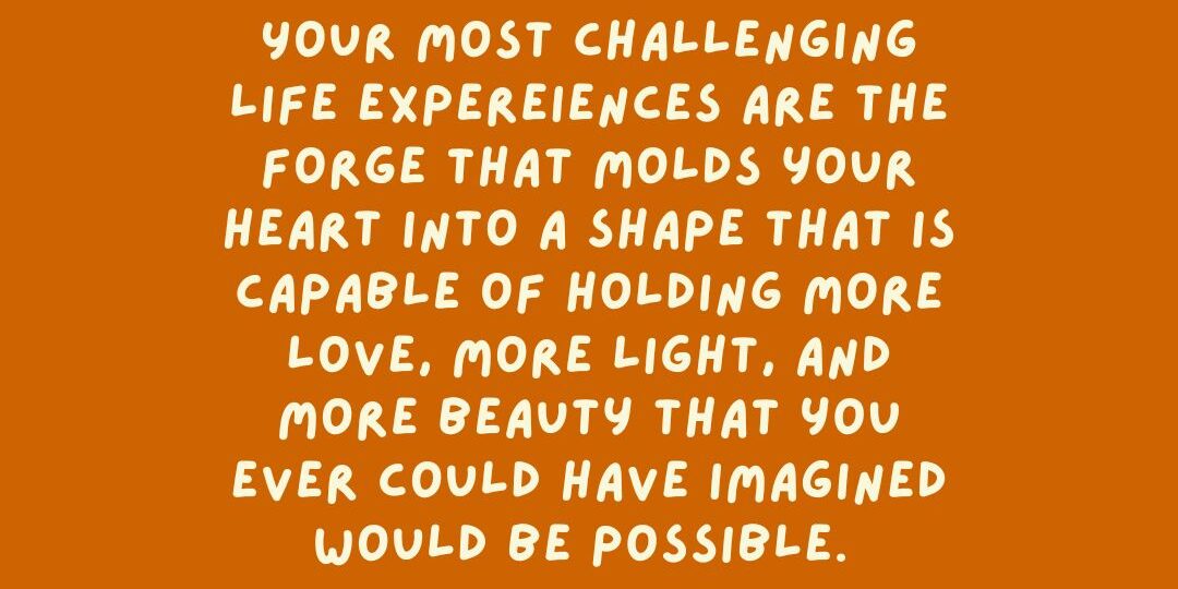The challenges in your life are like peeling off layer upon layer of heavy, needless clothing; clothing that has been blocking your inner light, your purest radiance. The more you surrender and allow each powerful life experience to be a catalyst for unleashing this truest and most authentic version of yourself, the more you see those difficult experiences as a forge. The heat of that forge molds your heart into a shape that is capable of holding more love, more light, and more beauty that you ever could have imagined would be possible.