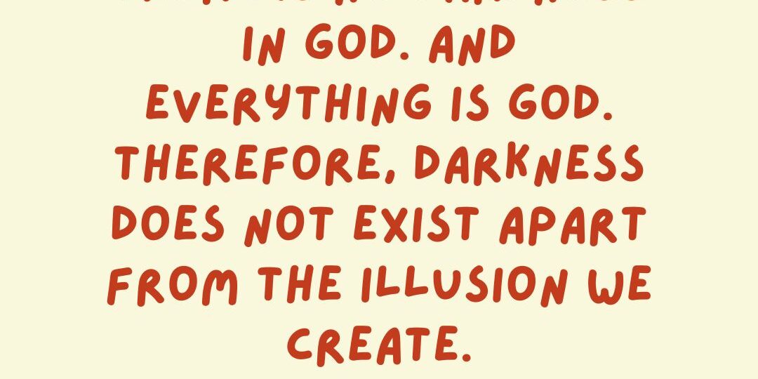 Darkness is always self-created, dear one. It does not exist apart from the illusion. It has no form or substance. Darkness – all darkness – is an illusion. The illusion comes from the lie that you could ever be separated from me. Light is my very essence, and therefore the purest form of your nature.