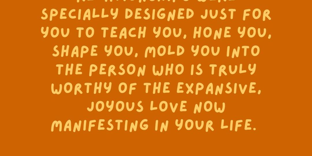 There is no such thing as a mistake. All events have been transpiring exactly as they were meant to transpire. All previous lovers and relationships were specially selected to teach you, hone you, shape you, mould you into the person who is truly worthy of the expansive, joyous love now manifesting in your life.