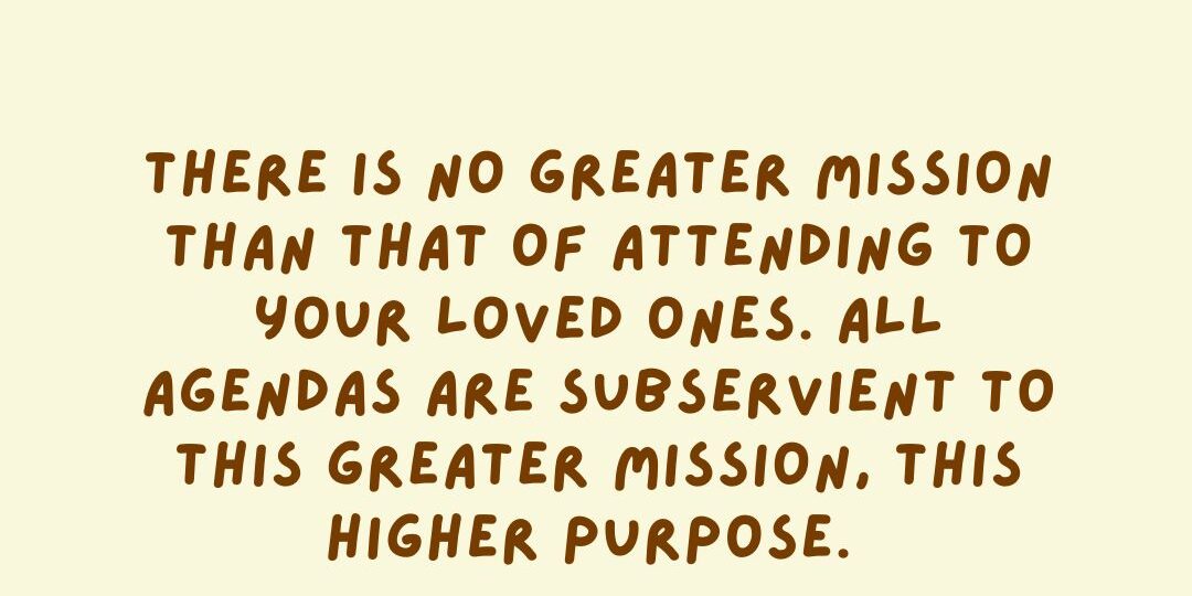 There is no higher mission than that of attending to your loved ones. All agendas are subservient to this greater mission, this higher plan.